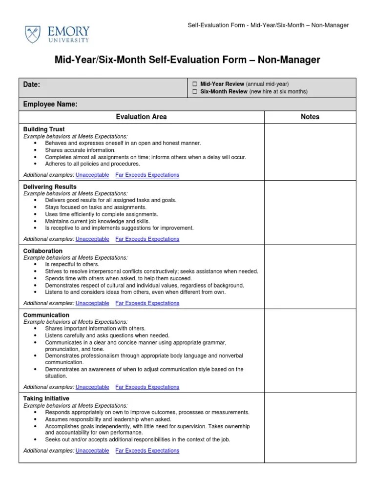 MidYear/SixMonth SelfEvaluation Form NonManager Date