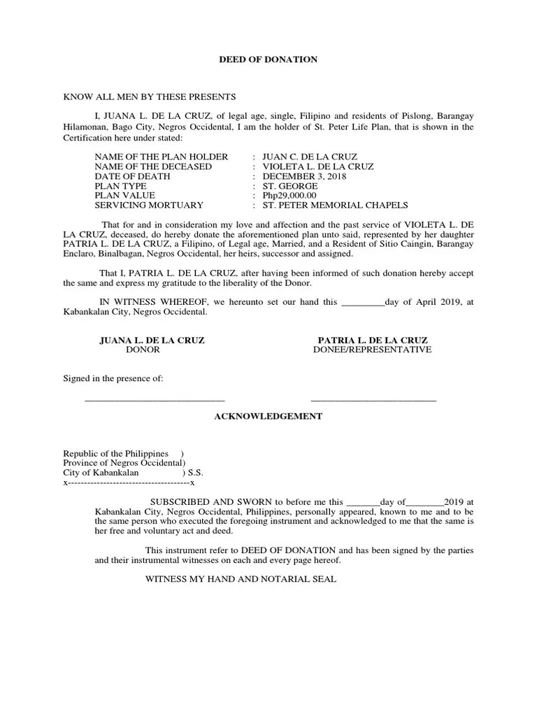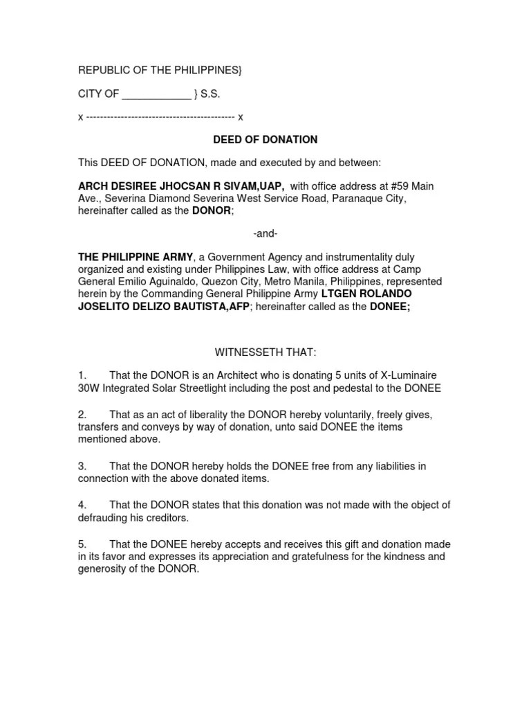 Deed of Donation Sample PDF Philippines Society