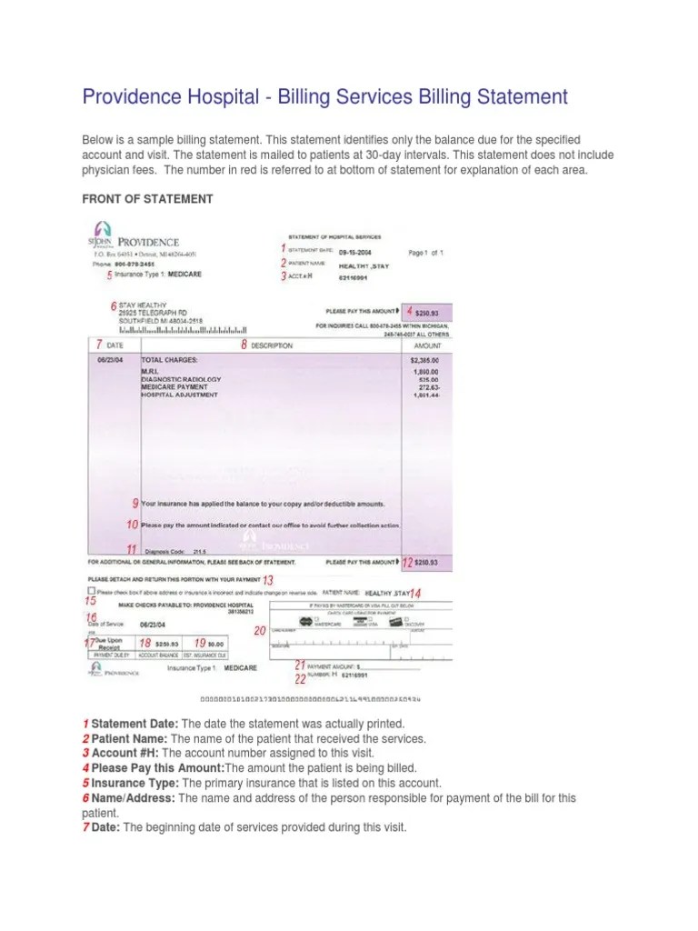 Providence Hospital Billing Services Billing Statement