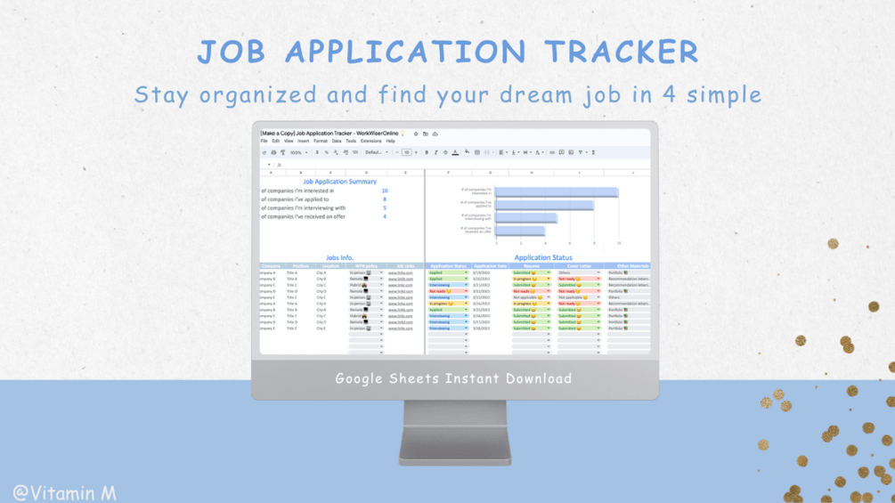 Job Application Tracker Excel & Google Sheets Spreadsheet Etsy