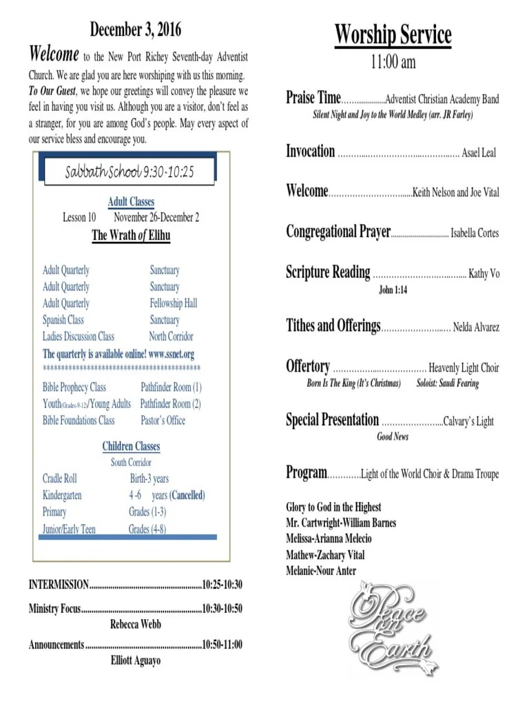 Bulletin Seventh Day Adventist Church Religious Behaviour And