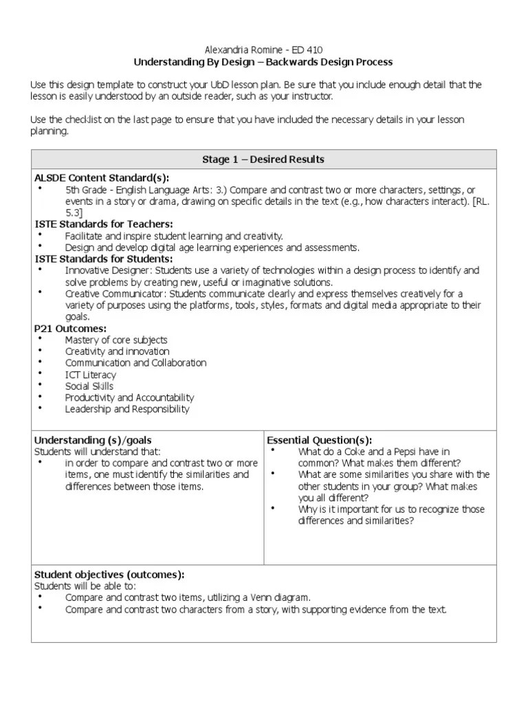 Understanding By Design Lesson Plan Template