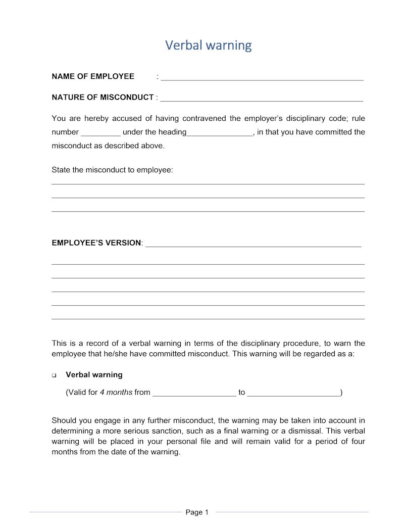 Web learn what a verbal warning is, when to use it and how to deliver it effectively. Web learn what verbal warnings are, why they are issued, and how to write them effectively. See examples of verbal warning scripts and tips for supervisors and. Web learn how to issue a verbal warning in the workplace, when to use it, and.